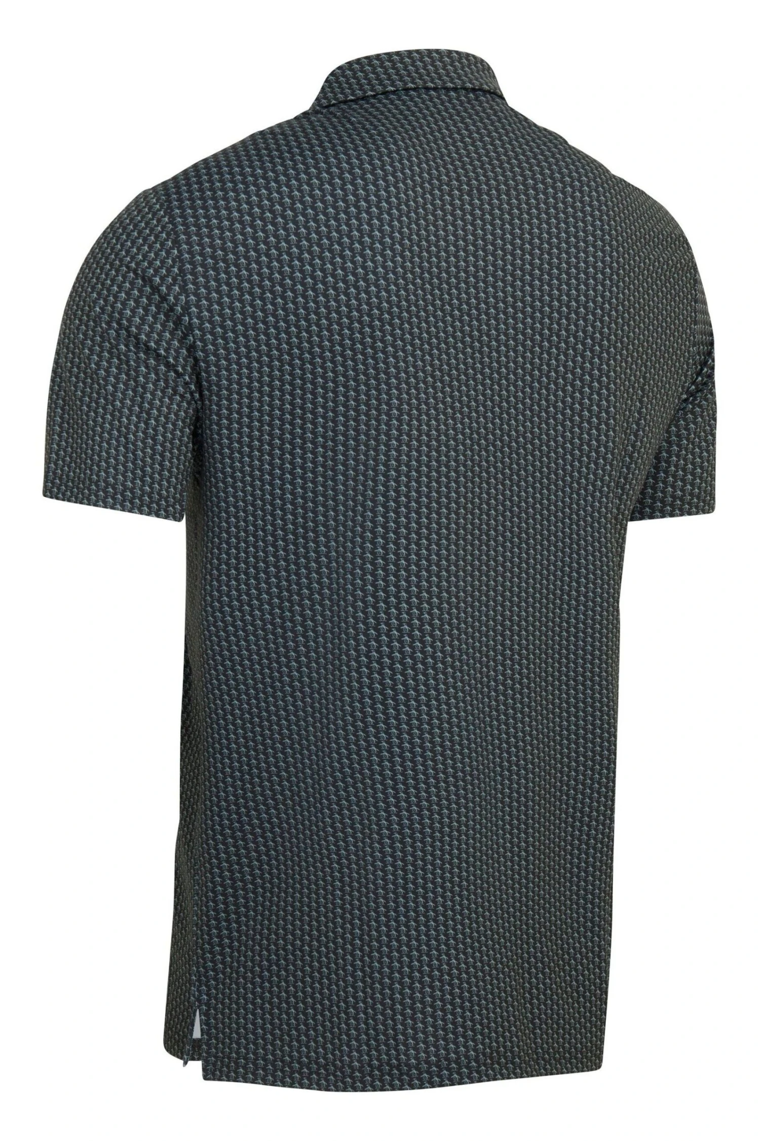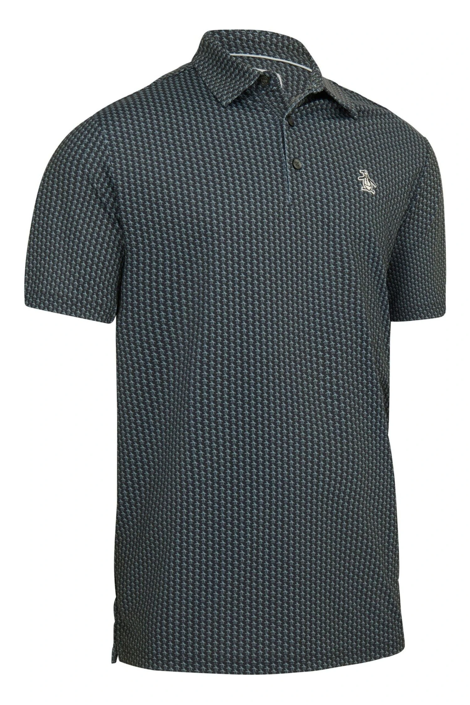 Original Penguin golf short sleeve regular fit allover Pete printed polo shirt with three button placket and self collar fabric. Left chest sticker Pete logo.