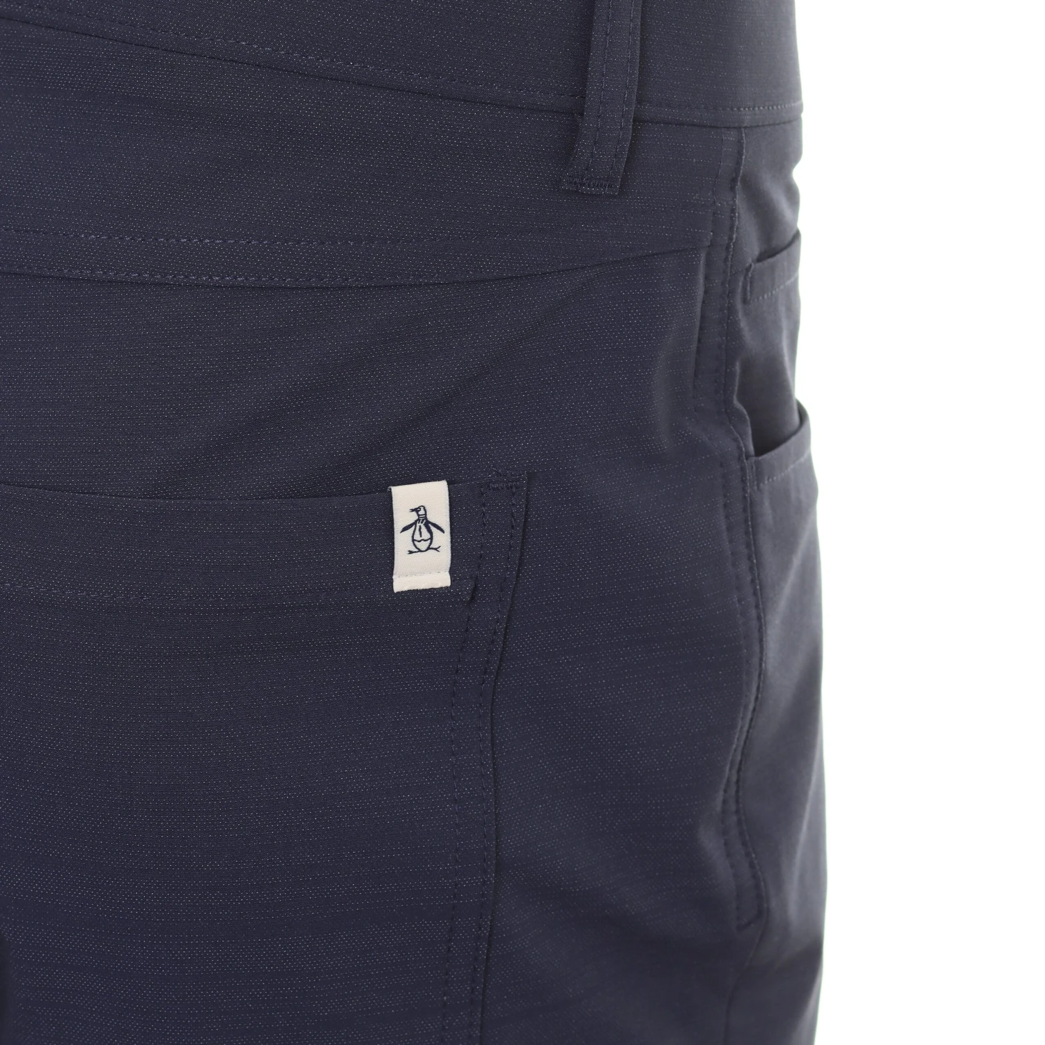 Mens Original Penguin Golf 5 Pocket Pant. A flat front, technically engineered golf pant fabricated in a lightweight, nylon blend with mechanical stretch. The OPG stretch fabric provides UV protection and excellent moisture management properties to help draw moisture away from the body & aid evaporation, keeping you fresh and dry.