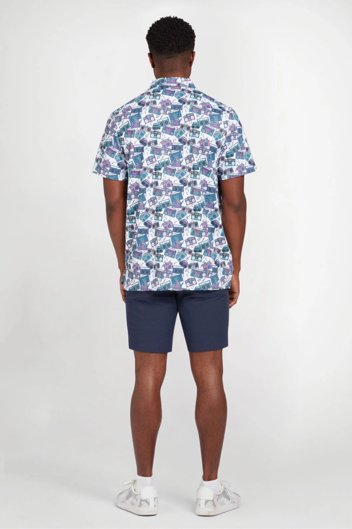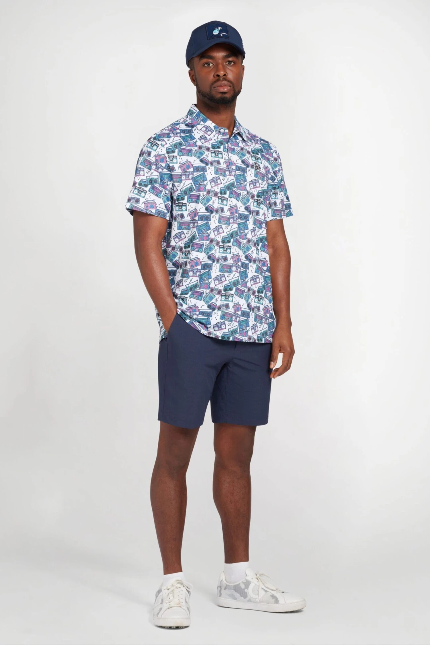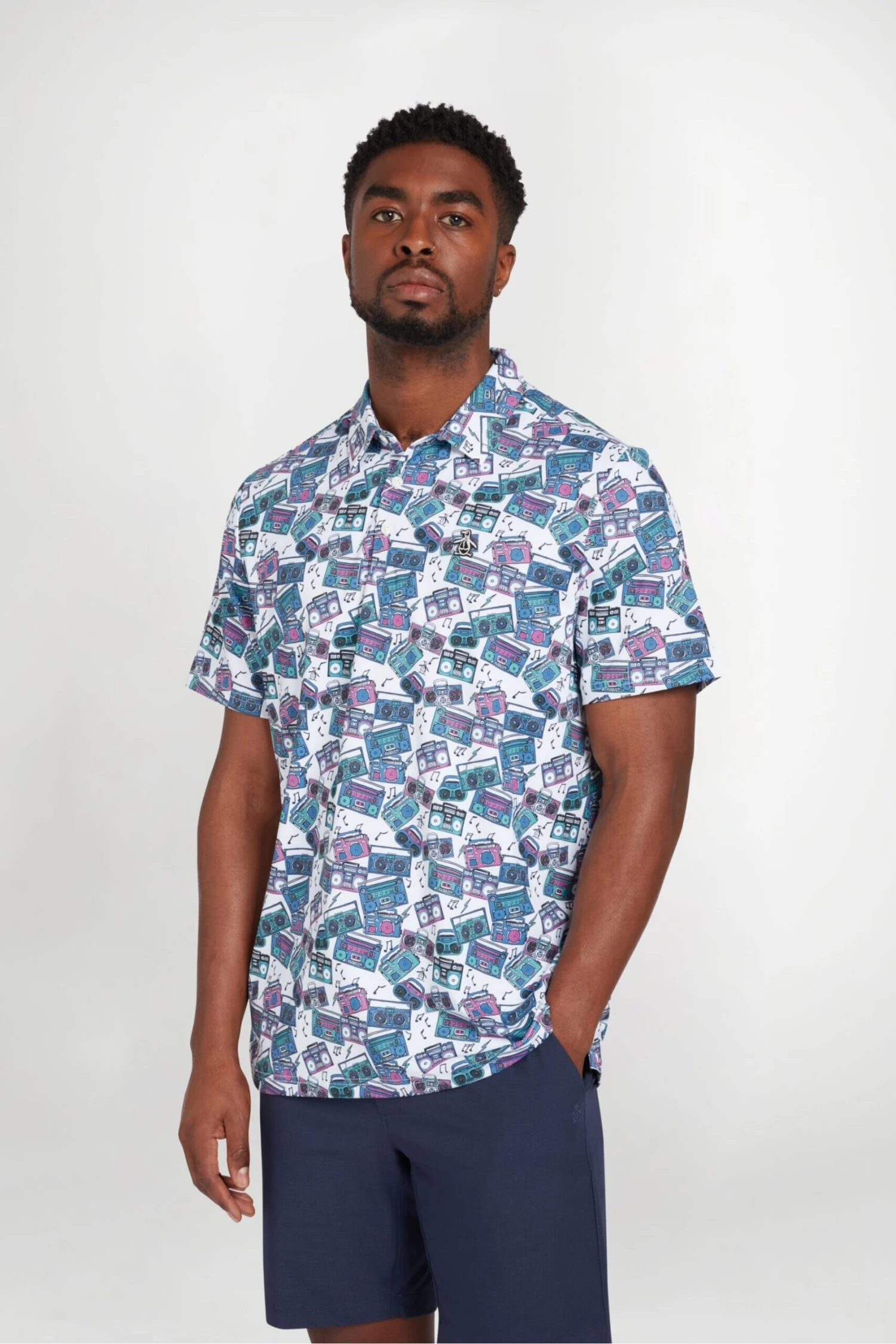 Stand out on the course with Penguin Golfs Heritage Boombox Print Polo with left chest sticker pete logo, Self collar and 3 button placket.