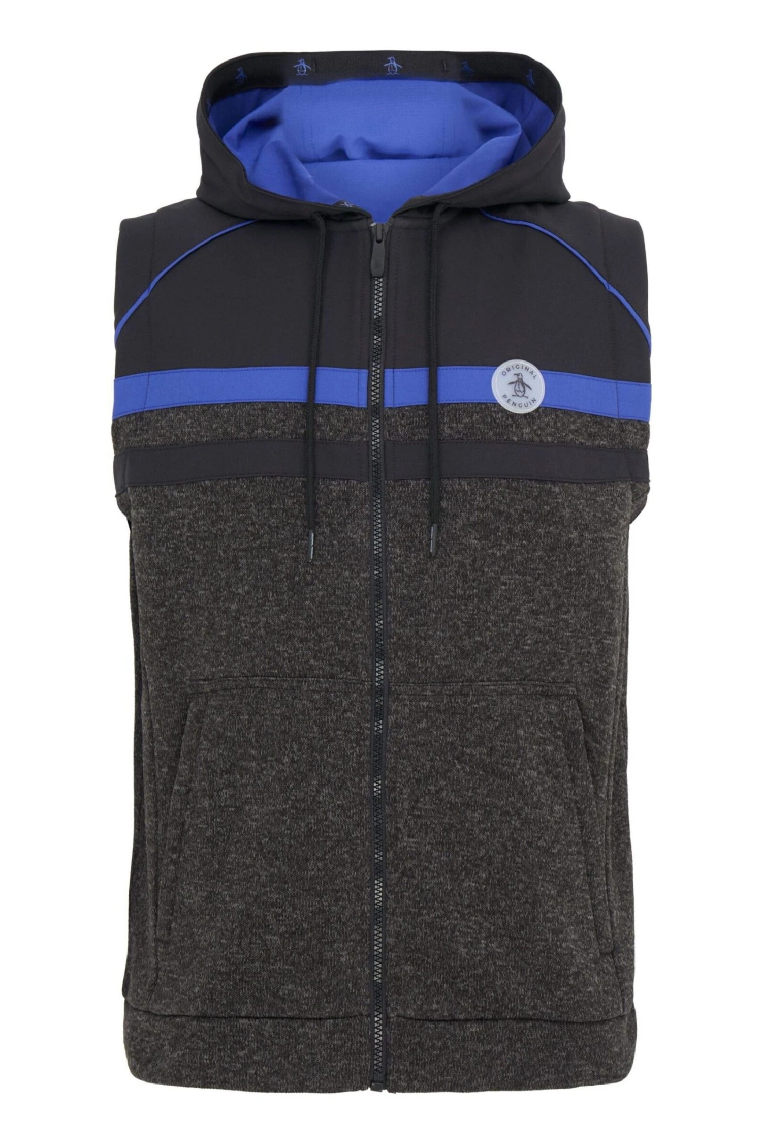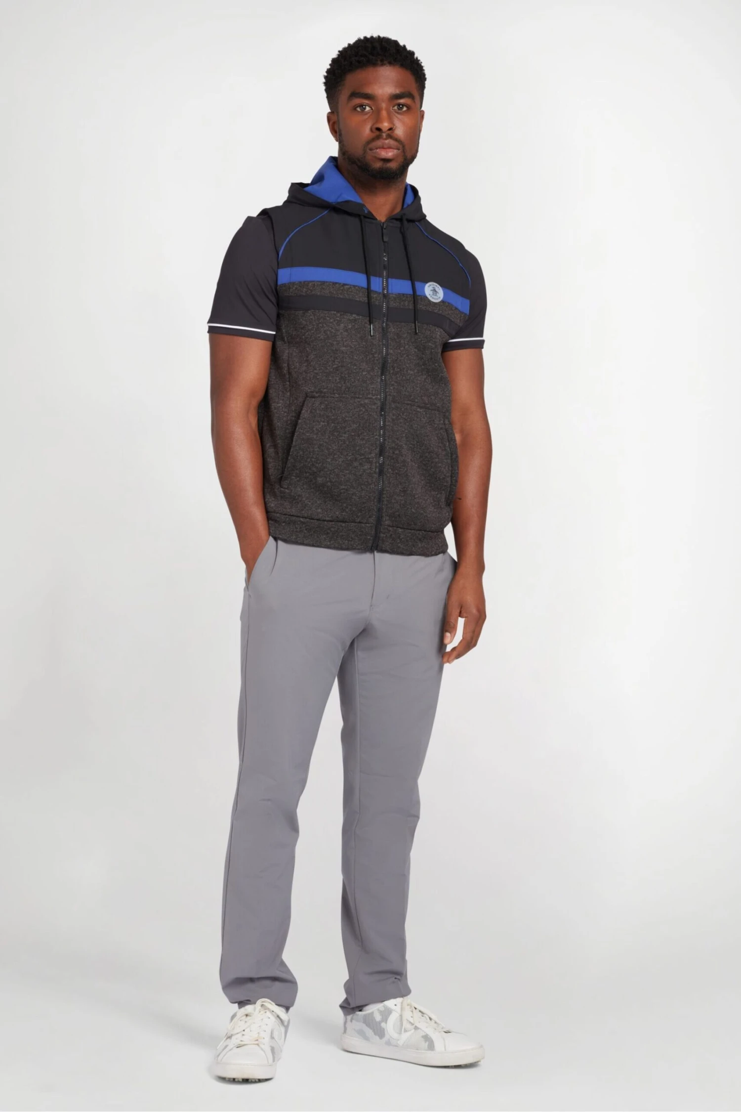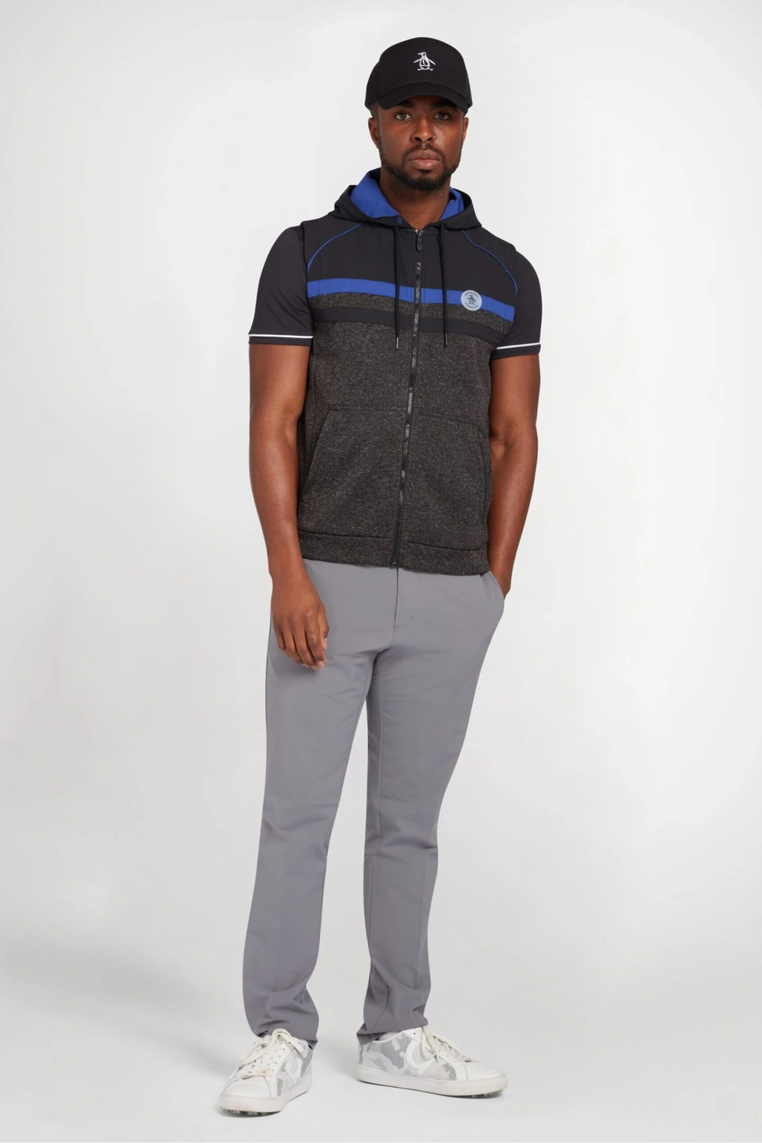 Penguin Golf Heritage Mixed Media hoodie with left chest sticker pete logo, single knit 3 button placket.