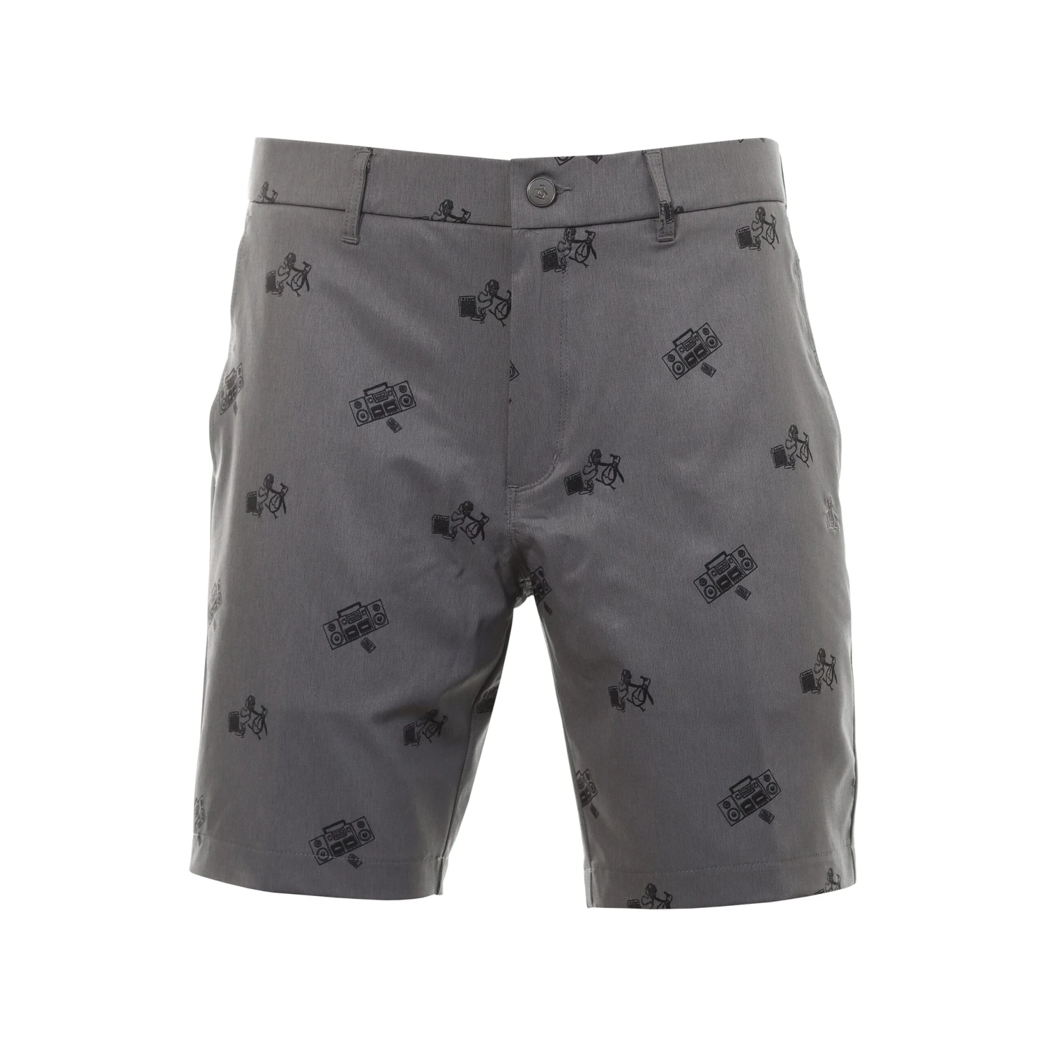 Mens Original Penguin Golf Karaoke Print Shorts. A technically engineered golf short fabricated in a lightweight fabric with mechanical stretch. The OPG stretch fabric provides UV protection and excellent moisture management properties to help draw moisture away from the body & aid evaporation, keeping you fresh and dry.