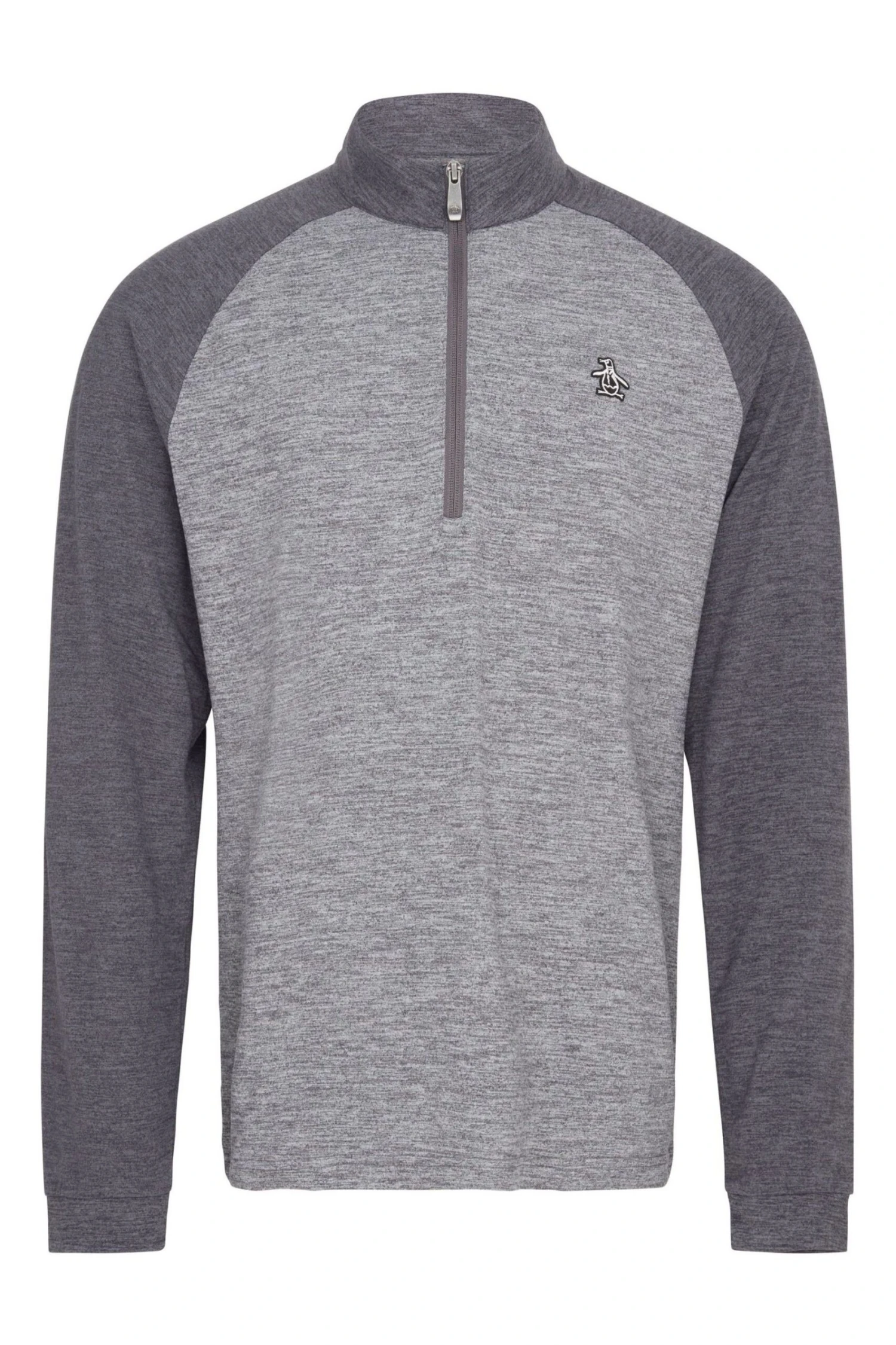 Men’s Original Penguin Golf Lightweight 1/4th Zip Pullover. This lightweight mid-layer offering OPGs stretch and moisture wick technology. Two-tone colour block design and raglan sleeve construction with Pete logo on the left chest.