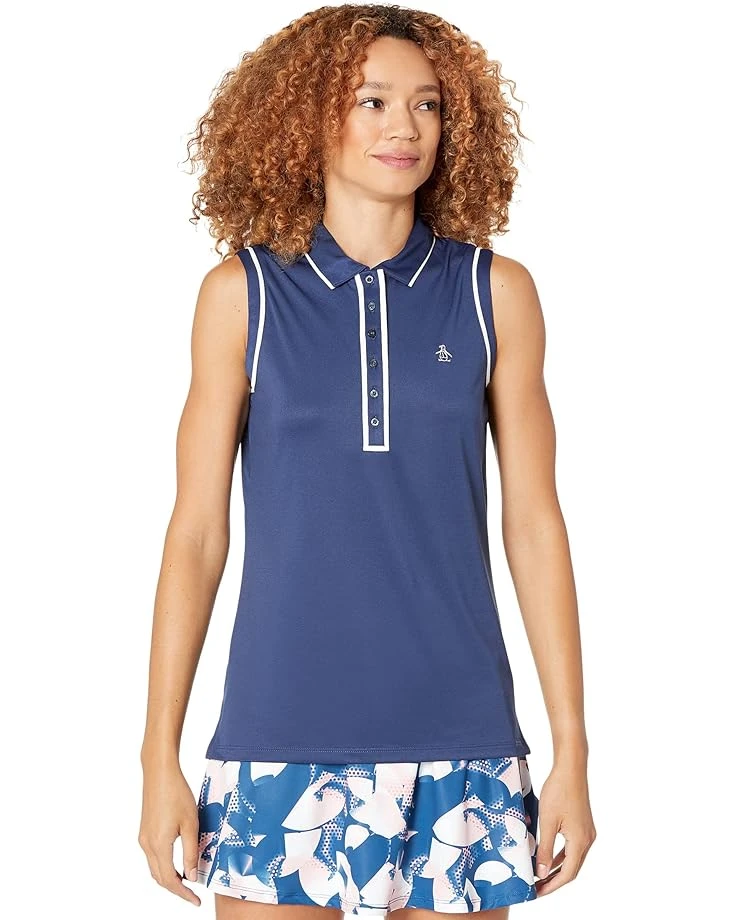 Get a sweet and simple appeal with the casual Original Penguin® Golf Veronica Sleeveless Polo.SKU: #9811759Pointed collar.Quarter button closure.Brand logo on chest.Sleeveless construction.Straight hemline.90% polyester, 10% elastane.Machine wash, tumble dry.Imported.Product measurements were taken using size SM. Please note that measurements may vary by size.Measurements: