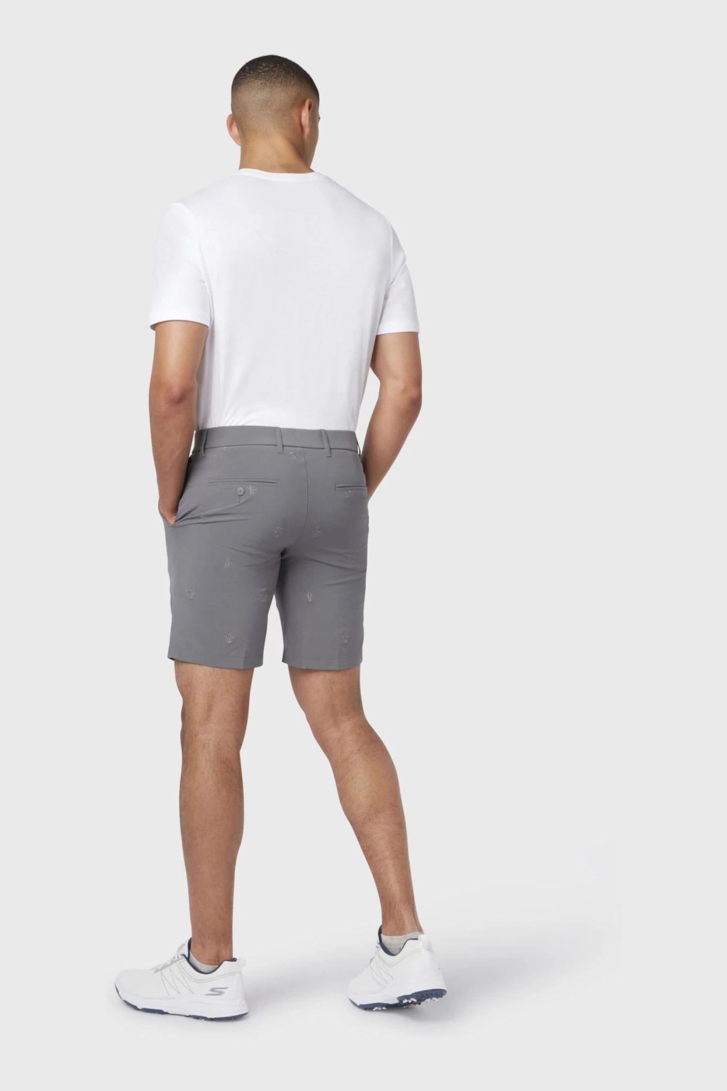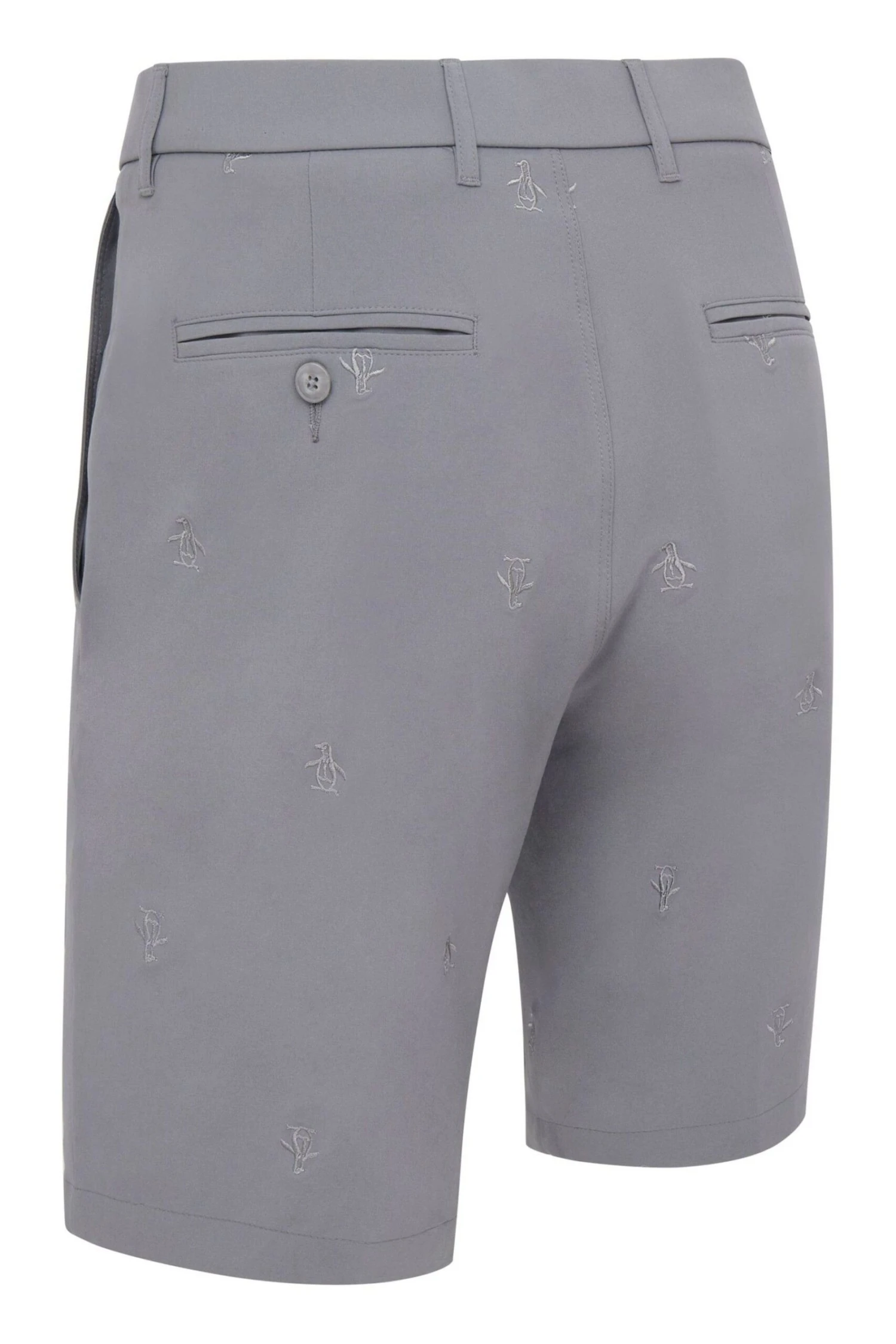 Original Penguin golf allover Pete embroidered 9” short. Hidden elastic waistband with silicon printed gripper. Left pocket embroidered Pete polo.